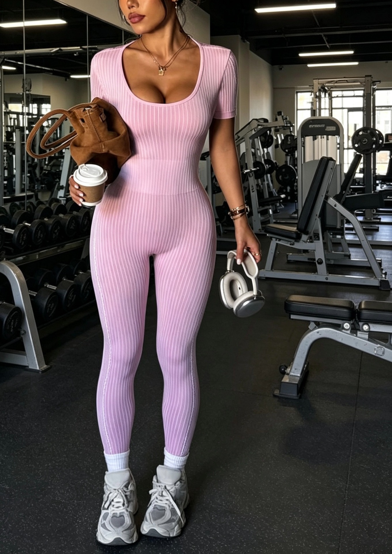 Emeld új szintre az edzéseidet és a mindennapi outfitedet ezzel a bordázott, varrás nélküli fitness overállal, amely egyszerre nőies, kényelmes és brutálisan alakformáló.